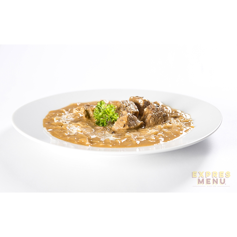 vepřové maso (31%), zelí kysané (zelí, voda, sůl, kmín), smetana, cibule, rýžová mouka, kukuřičná mouka, řepkový olej, sůl (jedlá kamenná sůl, jodičnan draselný), paprika mletá, česnek, kmín.