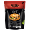 Segedínský guláš je připravený z vepřového masa. Kysané zelí dodává jídlu charakteristickou mírně nakyslou chuť. Omáčka je dochucená česnekem a kmínem.