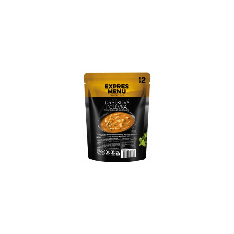 voda, vepřové a hovězí žaludky (22%), cibule, rýžová mouka, kukuřičná mouka, řepkový olej, paprika, sůl (jedlá kamenná sůl, jodičnan draselný), česnek, pepř, kmín, majoránka.
