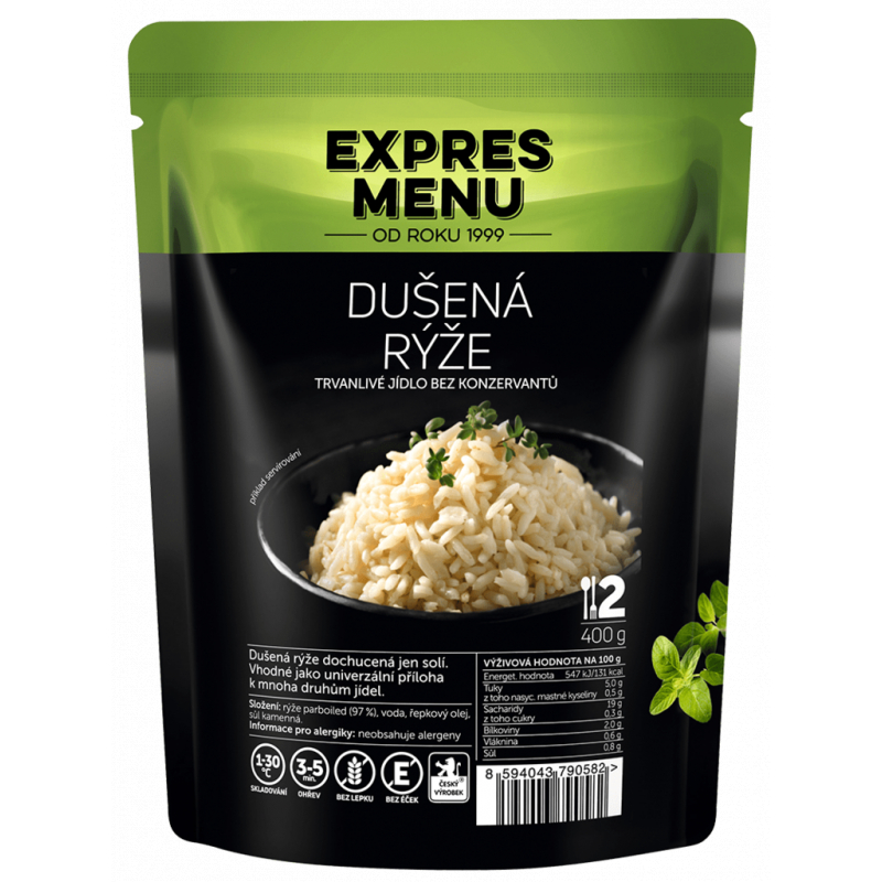 Popis: Dušená rýže dochucená jen solí. Vhodné pro rychlou přípravu přílohy k hlavnímu jídlu.