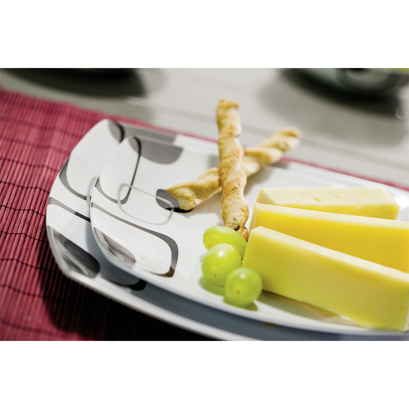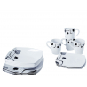 Sada melaminového nádobí Enigma16 dílů. Sada se skládá ze 4 dezertních talířků průměr ø 20 cm, 4 mělkých talířů ø 25 cm, 4 hlubokých talířů ø 23 cm a 4 hrníčků 350 ml. Nádobí je vhodné do myčky na nádobí, není vhodné do mikrovlnné trouby.