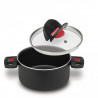 Hrnec s poklicíKeravis systém Click & Cook,1 ks včetně skleněné poklice. Stohovatelné nádobí. Hrnec ø 24 cm x výška 12 cm - 5,6 L. Rukojeti lze sklopit dovnitř a ven jednoduchým pohybem, jsou ergonomické izolované proti teplu. Úchyt na poklici je rovněž sklápěcí. Vhodné pro plynové, keramické a elektrické sporáky. Vnitřní povrch hrnce je nepřilnavý, zdravotně nezávadný - společnost Ballarini si nechává pravidelně testovat produkty mezinárodními agenturami jako je Neotron (IT), LGA (DE) a dánský institut, tím je zajištěna zdravotní nezávadnost. Vhodné do myčky na nádobí. Barva černá, materiál hliník.