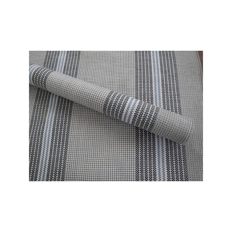 Koberec ideální pro stany, markýzy - snadná údržba, odolnost vůči vodě a slunci, lehký a velmi skladný; barva šedá; rozměr 500 cm x 250 cm; materiál - 100 % polypropylen; dodáváno s 6 kolíky a objímkami v transportní tašce