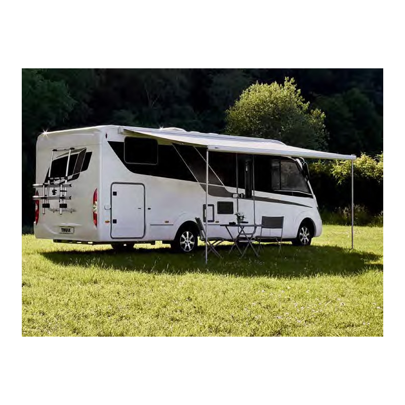 Markýza THULE OMNISTOR 5200, délka 3.52 m x výsuv 2.5 m, kryt stříbrný, PVC plátno Mystic Grey z jednoho kusu zajišťující absolutní vodotěsnost a dlouhou životnost, váha 25.4 kg, individuální nastavení sklonu plátna, individuální nastavení vypnutí plátna díky integrovaným napínacím ramenům, robustní ramena s péry, nohy s rychlu aretací s Quick-Lock-System, s přípravou pro třetí nohu, okapnička - přední profil s rýhou pro odvod vody a nečistot, bezpečnostní zajištění proti otevření během jízdy.