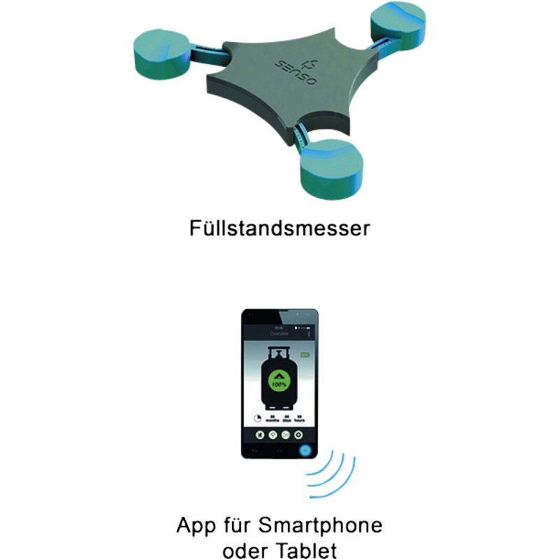 Zařízení je schopné převádět naměřená data skrz Bluetooth do chytrého telefonu i tabletu. Senso4s měří množství náplně a přesně zobrazí jak zbývající obsah, tak aktuální spotřebu plynu (všechno na základě prognóz chytré aplikace).