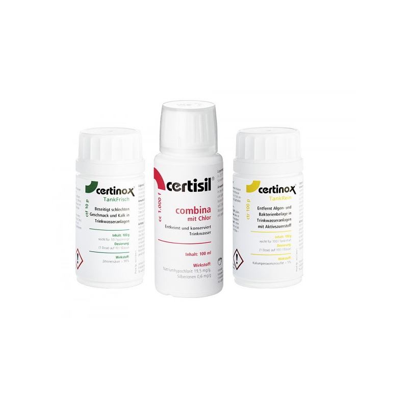 Desinfekce a konzervace vody Certibox 250 set Sada obsahuje Certinox TankRein 250g, Tankfrisch 250g a Certisil Combina 100 g