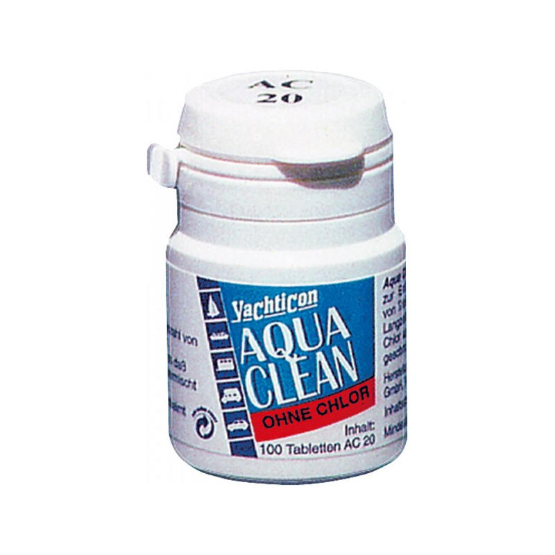 Pro zachování pitné a průmyslové vody. Stříbrný základ bez zápachu a chuti, pitná voda se uchovává až 6 měsíců. Ochrana vody pitné vody Aqua Clean 20. Dávkování 1 tableta na 20 litrů. Vydatnost - na 2000 l vody. Bez Chlóru. Obsah 100 tablet
