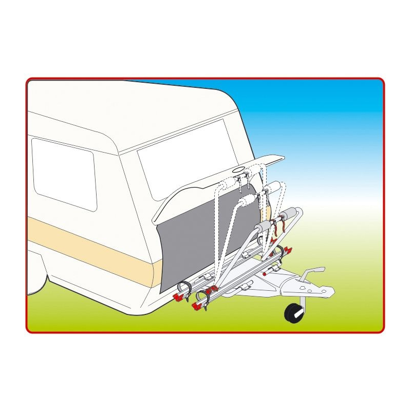 Levný a kompaktní nosič kol na oj karavanu od firmy Fiamma, vhodný pro standardní, ale i širší (např. Hobby) karavny s AL-KO ojí. Disponuje sklápěcím mechanismem pro případ potřeby otevření předního kastlíku.